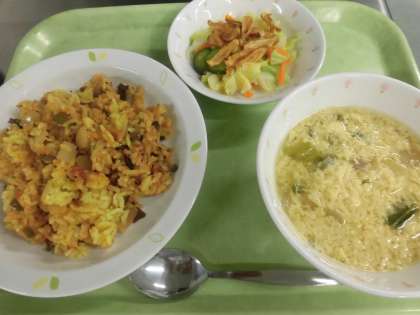 鮭ピラフ 牛乳 ミルファンティ ごぼうチップサラダ