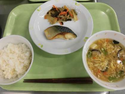 麦ごはん 牛乳 さば文化干し くきわかめの炒め煮 かきたま汁
