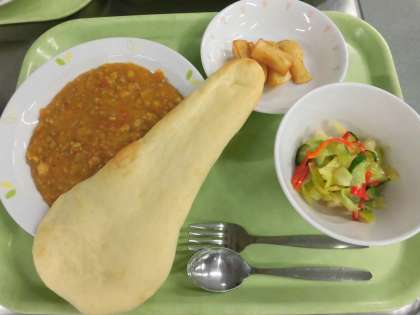 キーマカレーは、インド料理の一つです。キーマとは、インドのヒンディー語やウルドゥー語で、細切り肉やひき肉を意味しています。インドでは、宗教上の理由で、牛肉や豚肉を使う人たちは少なく、羊や山羊、鶏の肉を使うことが多いです。ナンもインドのパンです。南インドでは、食具を使わずに手を使って食べ物を食べる習慣があります。食べ物は神様が与えてくださった神聖なものだからなんだそうです。日本人が昔からはしを使うのと同じように、手を上手に使って食事をします。様々な国の食文化を知ることは色々と興味深いですね。