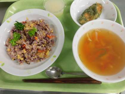 ちらしずしの お米の色は、黒米の色素を生かしたものです。うめぼしに赤シソを加えると、美しい赤色が出るのと同じように、黒米にすし酢を加えると美しい赤色に白いお米も染まります。