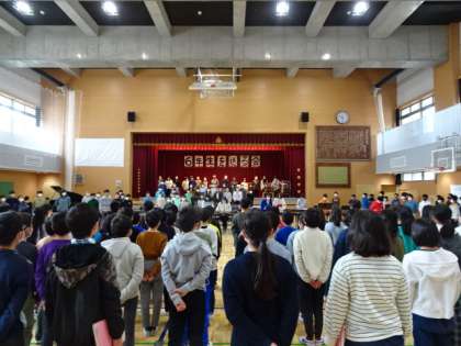6年生からは、在校生に「キセキ」の合奏のプレゼントです。体育館にいる5年生の前で、短い練習時間の中でしたが、楽しい立派に演奏してくれました。最後に、教室にいる子どもたちも一緒に「ひまわりの約束」を歌って送る会を終わりました。企画・運営をしてくれた代表委員のみなさんありがとうございました。昼からは「せせらぎ班」のお別れ会も行われました。6年生と過ごす時間も少なくなってきます。一日一日を大切に過ごしましょう。