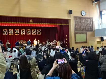 保護者会の前に、6年生が体育館で「キセキ」の合奏を保護者の皆さんに披露しました。なかなか音楽の授業をご覧いただくことができませんでしたが、卒業前に保護者の方の前で披露で来て子どもたちも喜んでいました。ご参加ありがとうございました。