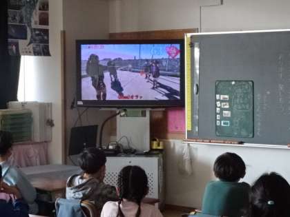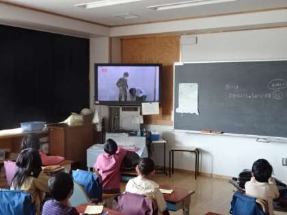 集会委員会が企画運営する今年度最後の児童集会は、「お笑い集会」です。たくさんの応募があった中、オーディションを通った6組がお笑いを披露してくれました。テレビを通してのお笑いでしたが、教室からはたくさんの笑い声が聞こえました。