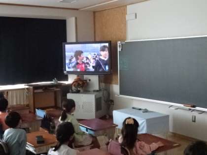 今年度もテレビ放送で「1年生を迎える会」を行いました。6年生が、学校の様子をビデオにとって一年生に紹介してくれました。また、各クラスからの入学のお祝いのメッセージもありました。1年生もビデオでしたが、自分の名前を全校のみんなに元気に言うことができました。早く一緒に遊べるよいいですね。1年生入学おめでとうございます。