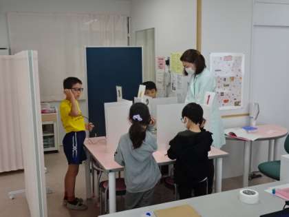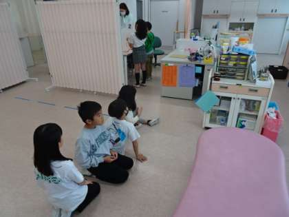 3年生、5年生が聴力検査を受けました。写真は3年生の様子です。音を出さないようにみんな静かに検査を受けています。