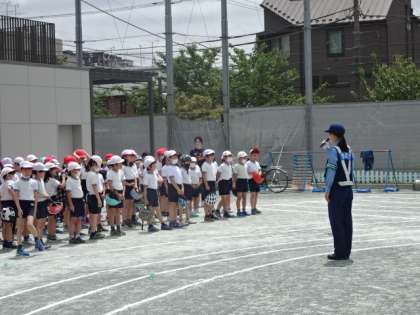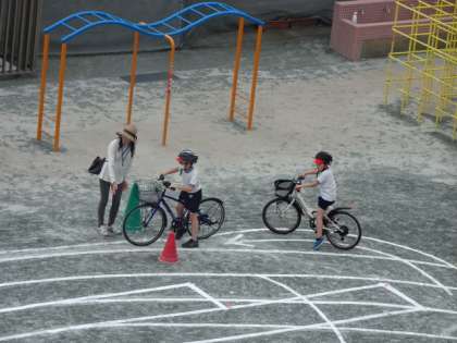 3年生は、自転車の乗り方を教えていただきました。ヘルメットをかぶって、実際に自転車に乗って体験をしました。4月からは大人のヘルメット着用が求められるようになりました。自転車の事故は、大きなけがにもつながります。安全な乗り方で乗りましょう。