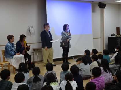 ALTの先生の紹介で、シンガポールの校長先生方が本校の視察にお見えになりました。中休みの様子や授業の様子、1年生の給食の準備の様子などをご覧になりました。4時間目には、昨年度の総合的な学習の時間でシンガポールのことについて調べた4年生が、校長先生方の自分たちが調べたことを紹介しました。校長先生方もとても喜んでくださいました。