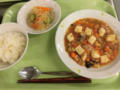 麦ごはん 牛乳 西湖豆腐 春雨サラダ