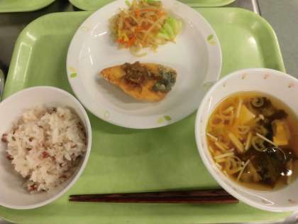 赤米ごはん 牛乳 魚の南蛮揚げ 野菜のおかかかけ えのきのみそ汁