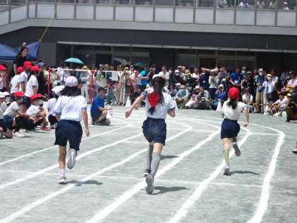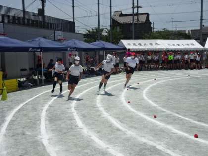6年生の短距離走です。体が大きくなった6年生。インコースの子は、コースの走り方が大切になりますが、最後の運動会。最後まであきらめずに走りぬきました。