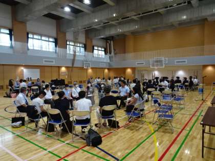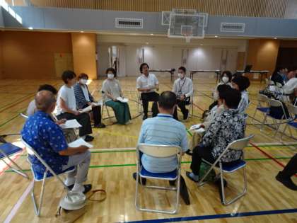 15時から体育館で「富士の学び舎合同学校協議会」を行いました。富士中、池之上小、多聞小・多聞幼稚園、本校の地域関係者が一堂に会しての会です。今年度は「アフターコロナ、ウィズコロナにおける地域と学校の連携」をテーマに、15人ずつぐらいのグループで意見交換をしました。様々なご意見をいただきありがとうございました。