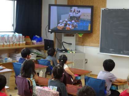 今日の体育朝会は、テレビ放送での「プール開き」でした。体育主任の小池先生から「プールの約束」のお話、6年生代表の二人から、今年の水泳で頑張ること等のお話がありました。最後に運動委員会で作成した「プール」の入り方等の動画を見ました。今年も安全に楽しく水泳に取り組みましょう。