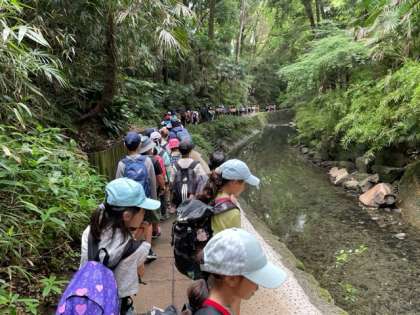 環七、駒沢通り、環八を通って、等々力渓谷に到着。緑がたくさん見られる渓谷を歩きます。