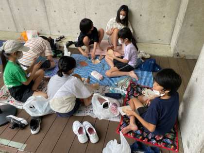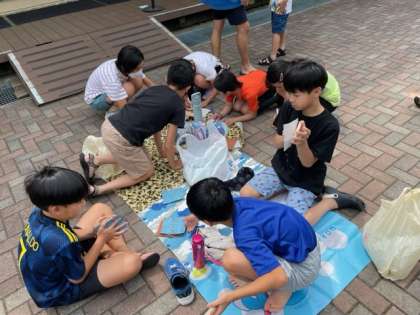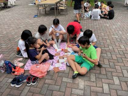 1組と3組は、コースターを作っています。紙ヤスリを使ってツルツルに磨いて、好きな絵をかいています。素材の味を生かすと言って絵をかかない子もいますが、家に持ち帰るのを楽しみにしていてください。