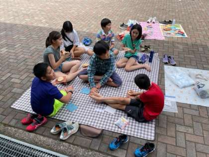 3組と1組のマスつかみ、2組のコースター作りの様子です。