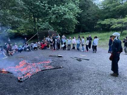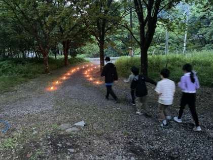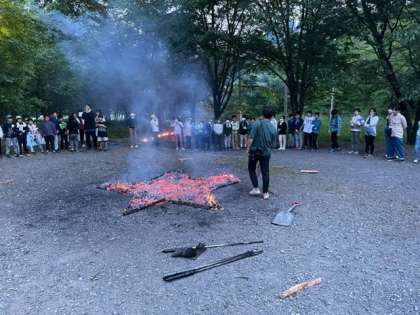 楽しかったキャンプファイヤーが終わりました。キャンプファイヤー係の頑張りが素晴らしかったです。1日めもあと少し、楽しく安全に過ごしましょう。