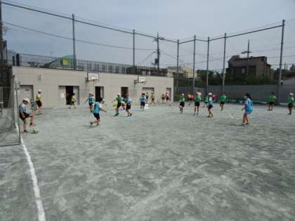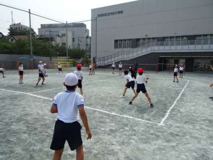良い天気の中、クラブ活動を行っています。校庭で体をいっぱい動かして運動しています。