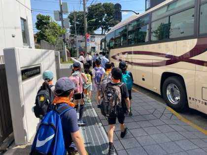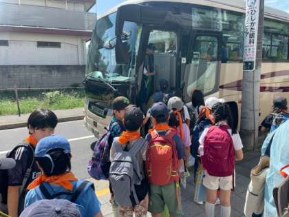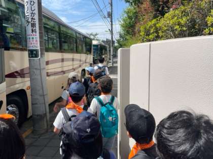 よい天気の中、4年生が社会科見学に出発します。見学場所は、東京タワー、水の科学館、中央防波堤埋立処分場です。しっかり見学しましょう。