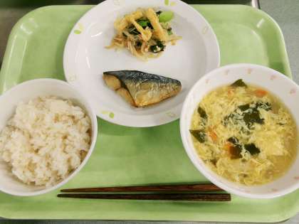 あわごはん 牛乳 さばの文化干し 油揚げと野菜のひたし かきたま汁