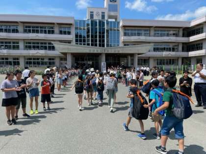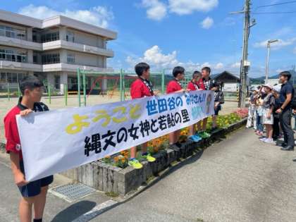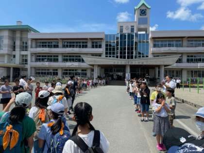 舟形小学校に到着。全校の皆さんが温かく迎えてくれました。
