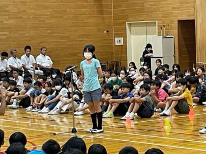 3校の校歌を紹介し合った後、世田谷区2校の学校紹介をしました。代表の言葉は、代沢小が担当しましたが、立派に挨拶ができました。