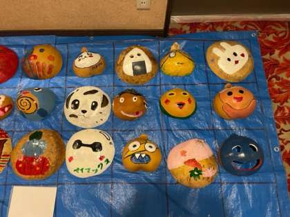 子どもたちの作品です。この後、ニスを塗ってもらって学校に送ってもらいます。お家に持って帰るのは2学期になります。楽しみにしていてください。