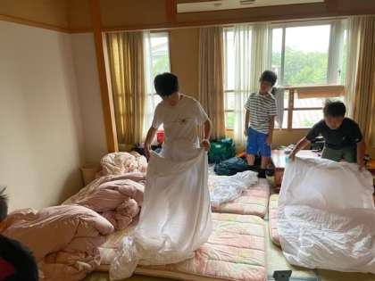 3日めの朝は、小久保先生の「コケコッコー」の放送でお目覚めです。身支度、荷物の整理、部屋の片付け、やることがたくさんありますが協力して取り組みましょう。