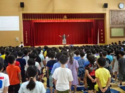42日間の夏休みを終えて、子供たちが学校に戻ってきました。2学期の始業式は、1年生から6年生が体育館に集合して行いました。新型コロナウイルス感染症が流行してからはテレビ放送で行っていたので、4年生以下は初めての経験になりました。少し緊張しながらも静かに話を聞くことができました。5年生の代表の児童も多くの友達の前でしっかりと2学期の抱負を述べてくれました。久しぶりの体育館での校歌も元気に歌えました。転入生も迎えて2学期が始まります。充実した2学期になるようみんなで協力していきましょう。