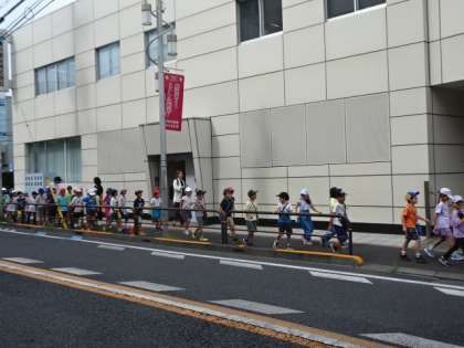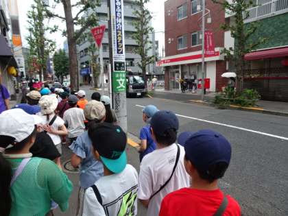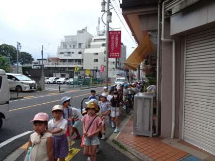2年生が、生活科の学習で「町たんけん」に出かけました。曇り空で歩くのにはよい気候でした。まちにあるいろいろなものを見つけました。