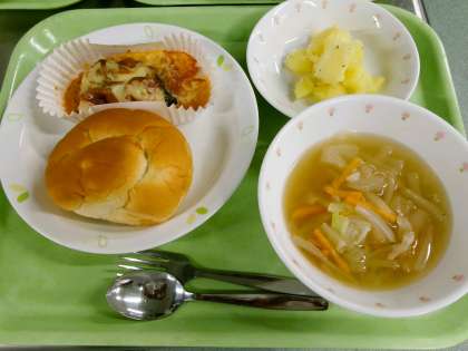 パインパン 魚のピザ風 粉ふきいも コンソメスープ