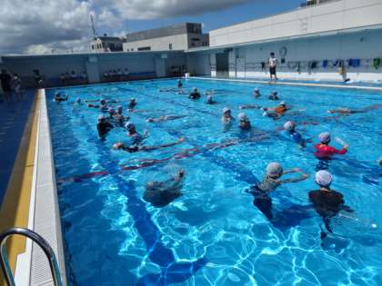 6年生が服を着て水の中に入る着衣泳の体験をしました。ペットボトルをもって静かに浮く体験などを行いました。もしもに備えた体験です。今日で、代沢小学校の水泳は終わりです。事故なく水泳ができました。ご家庭のご協力に感謝もうしあげます。