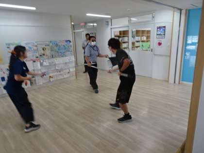 9月の避難訓練として不審者対応訓練を北沢警察署の方に来ていただき実施しました。学校に不審者が入ってきたときの先生方や自分たちの対応について、警察の方からの話も聞いてしっかりと学びました。