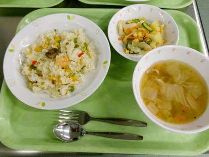 ピラフ 牛乳 たまごサラダ 野菜スープ