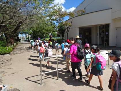 暑い中で、たくさん遊んで疲れましたが、学校まで頑張って歩きました。「1年生の時より疲れた」と言っていました。最後は、引率の先生方、主事さん方にしっかりとお礼を言って2年生の遠足は終了です。よく頑張った遠足でした。