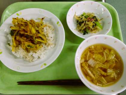 かきあげ丼 牛乳 白菜のみそ汁 おひたし