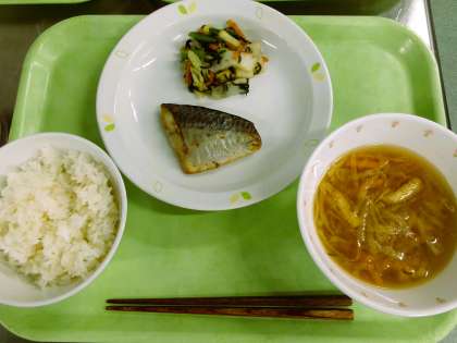 麦ごはん 牛乳 さばの一味焼き 白菜の磯和え みそ汁