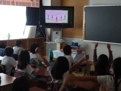 今日の体育町会は、ランランタイムで取り組む体力向上についてでした。テレビ放送で、これからの予定や、ラジオ体操、持久走のポイントを動画等で説明がありました。これからポイントを意識して取り組み、体力向上に努めていきましょう。