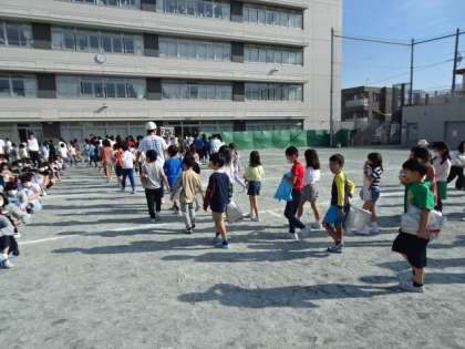 10月の避難訓練を行いました。今回は、地震発生を登校時間の8時20分に設定しての訓練でした。投稿して教室にいる子、昇降口や階段にいる子、まだ、登校途中の子もいる中で、自分の行動を選択しての訓練でした。地震は、いつ起こるかわかりません。登校中、下校中に起こった時の対応など、おうちでも確認をしておきましょう。