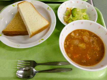 二色サンド 牛乳 トマトシチュー 野菜のレモンサラダ