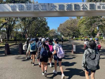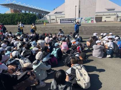 お弁当を食べて、総合運動場に移動しました。ここで午前の部が終わるのを待ちます。