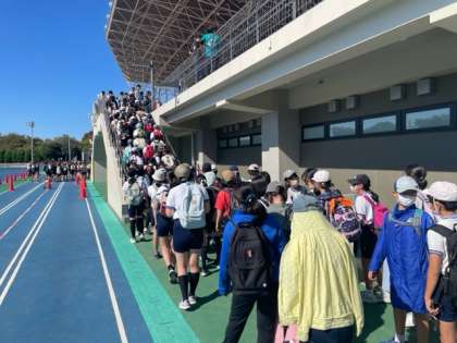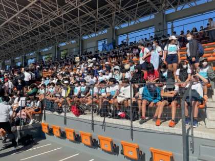 午前の部が終わって、スタンドに座りました。東京オリンピックの時に改修されたきれいなスタンドから応援します。