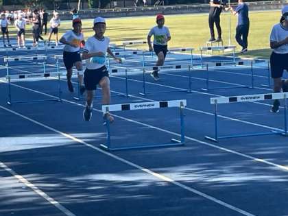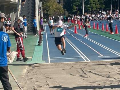 男子の部の様子です。男子、女子ともに種目は100m走、走り幅跳び、50mハードルです。みんな頑張ってます。