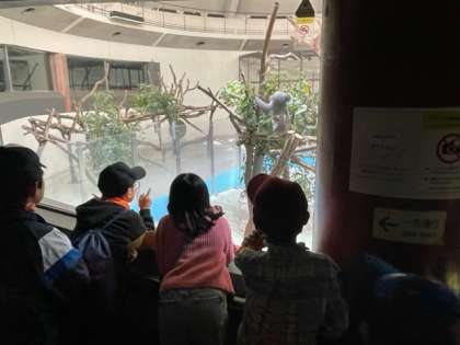 午前中は、シフゾウ広場を本部にアジア園とオーストラリア園をグループごとに見学です。協力して見学しています。