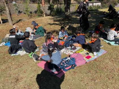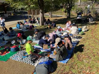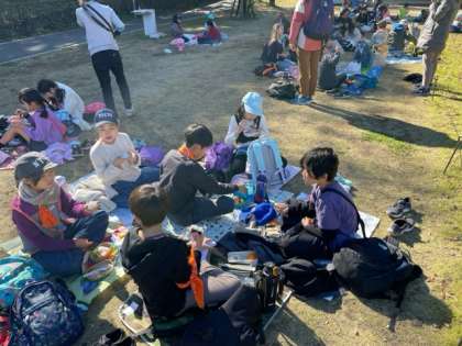 午前中の見学を終えてお弁当です。グループごとで食べます。美味しいお弁当ありがとうございました。いただきます。