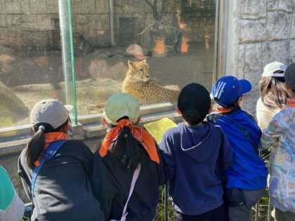 お弁当を終えて、午後の見学です。アフリカ園に移動してグループごとに見学しています。午後も協力して見学しましょう。