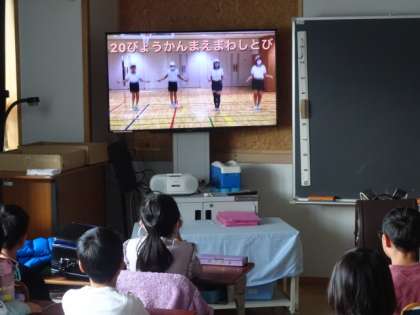 今日の体育朝会は、運動委員会の「短縄」の技の紹介でした。みんな上手に飛べていました。特に4年3組の横山先生の「後ろ二重とび」が素晴らしかったです。みんなも練習して上手にとべるようになりましょう。