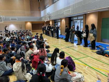 秋季舟形交流2日めの朝を迎えました。舟形の子どもたち、代沢の子どもたちが体育館に集まって来ています。雨もやんでいます。昨日の夜は、楽しく過ごせたでしょうか。二日めは、キッザニアです。楽しく過ごしましょう。
