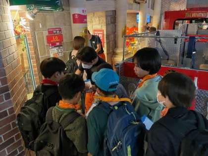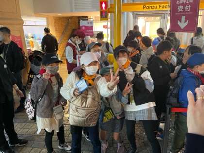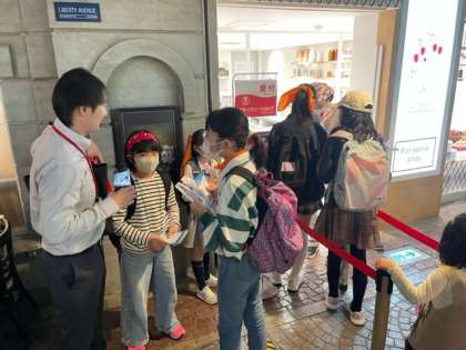 グループごとに体験をはじめています。お店によっては予約も必要です。舟形小、代沢小、山崎小以外にもたくさんの子どもたちが来ています。上手に回りましょう。