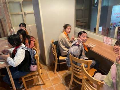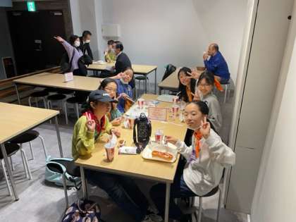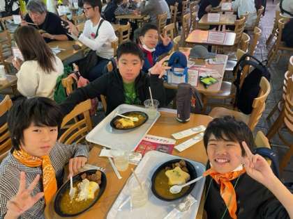 お昼の時間が近づいてきました。自分たちで作ったものやチケットで買ったものを食べています。