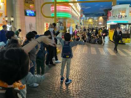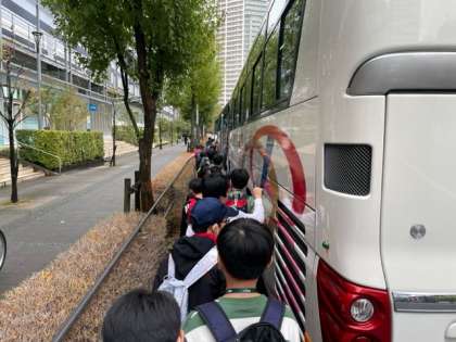 キッザニアでのお仕事体験を終えて学校に戻ります。山崎小グループとはここでさよならです。明日、また会いましょう。